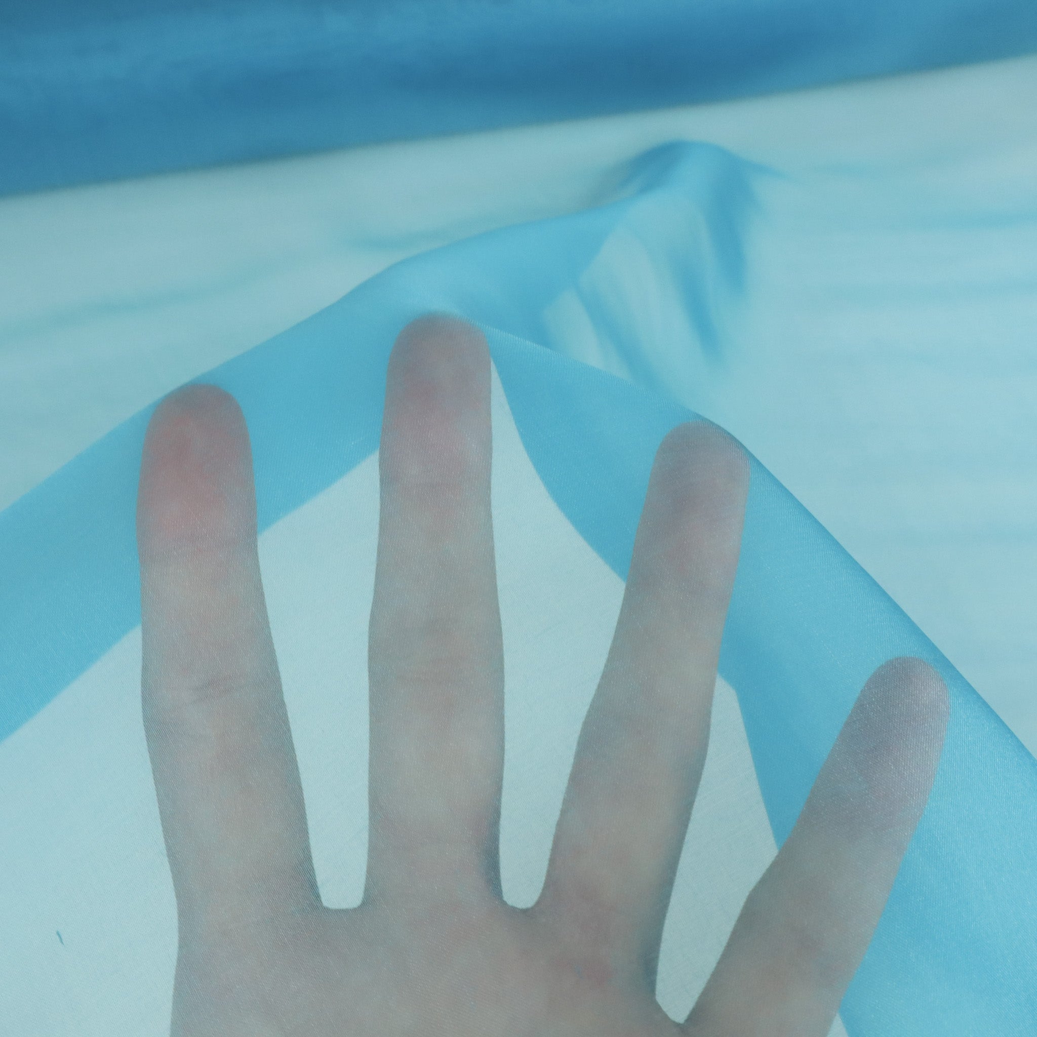 Silk Organza Deadstock - Aqua. Silk organza is completely sheer, weightless, and beautifully crisp, with a signature bouncy structure that’s perfect for adding volume without heaviness. Stunning on its own or as a supporting fabric, it’s ideal for sheer panels, underlining, gathered styles, statement sleeves, and structured silhouettes.