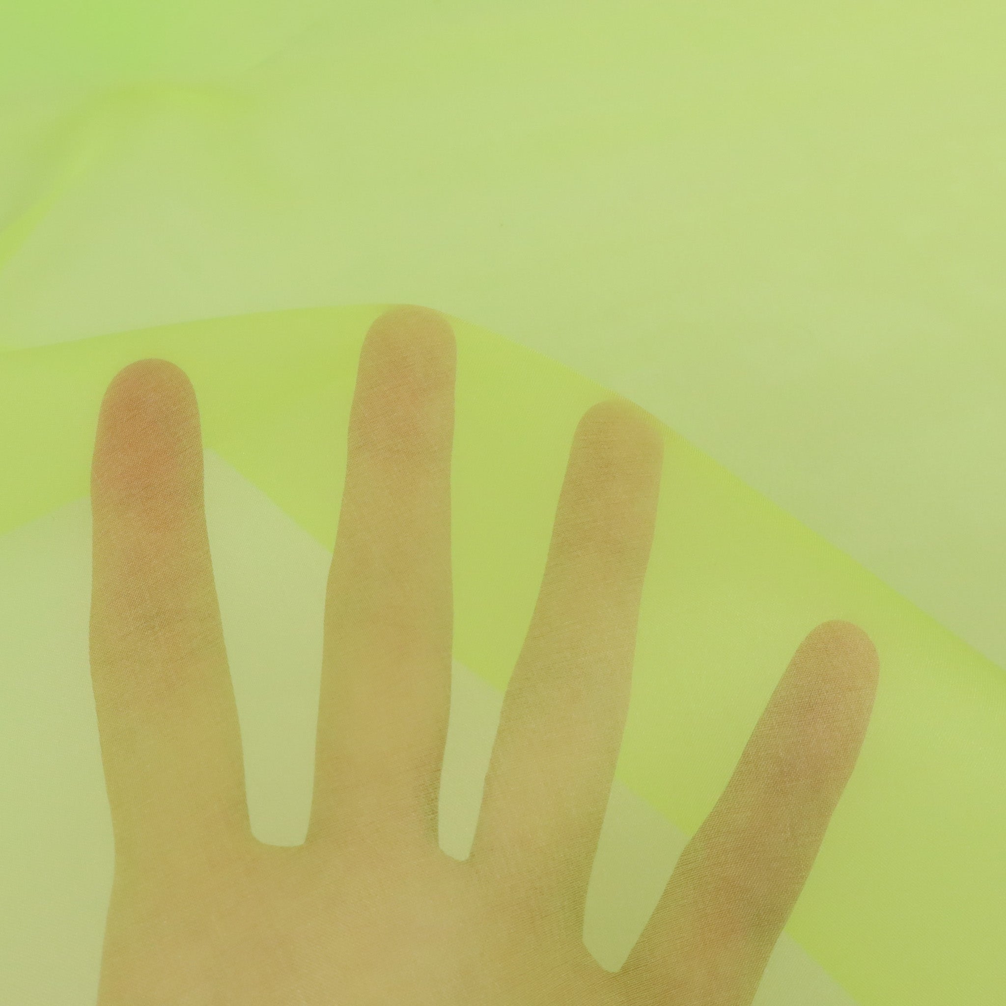 Silk Organza Deadstock - Citrus. Silk organza is completely sheer, weightless, and beautifully crisp, with a signature bouncy structure that’s perfect for adding volume without heaviness. Stunning on its own or as a supporting fabric, it’s ideal for sheer panels, underlining, gathered styles, statement sleeves, and structured silhouettes.