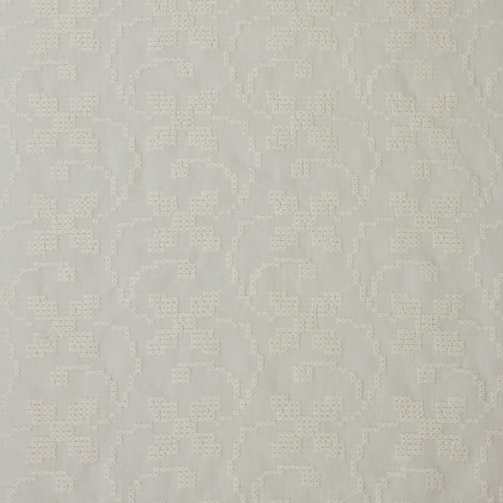 Celia Embroidered Cotton Designer End – Vintage White. A delicate embroidered cotton in vintage white, featuring a floral-inspired design. Soft, breathable, and lightweight, this fabric is perfect for dresses, blouses, skirts, and timeless summer layering. Sourced as a true designer end, available only in limited quantities.