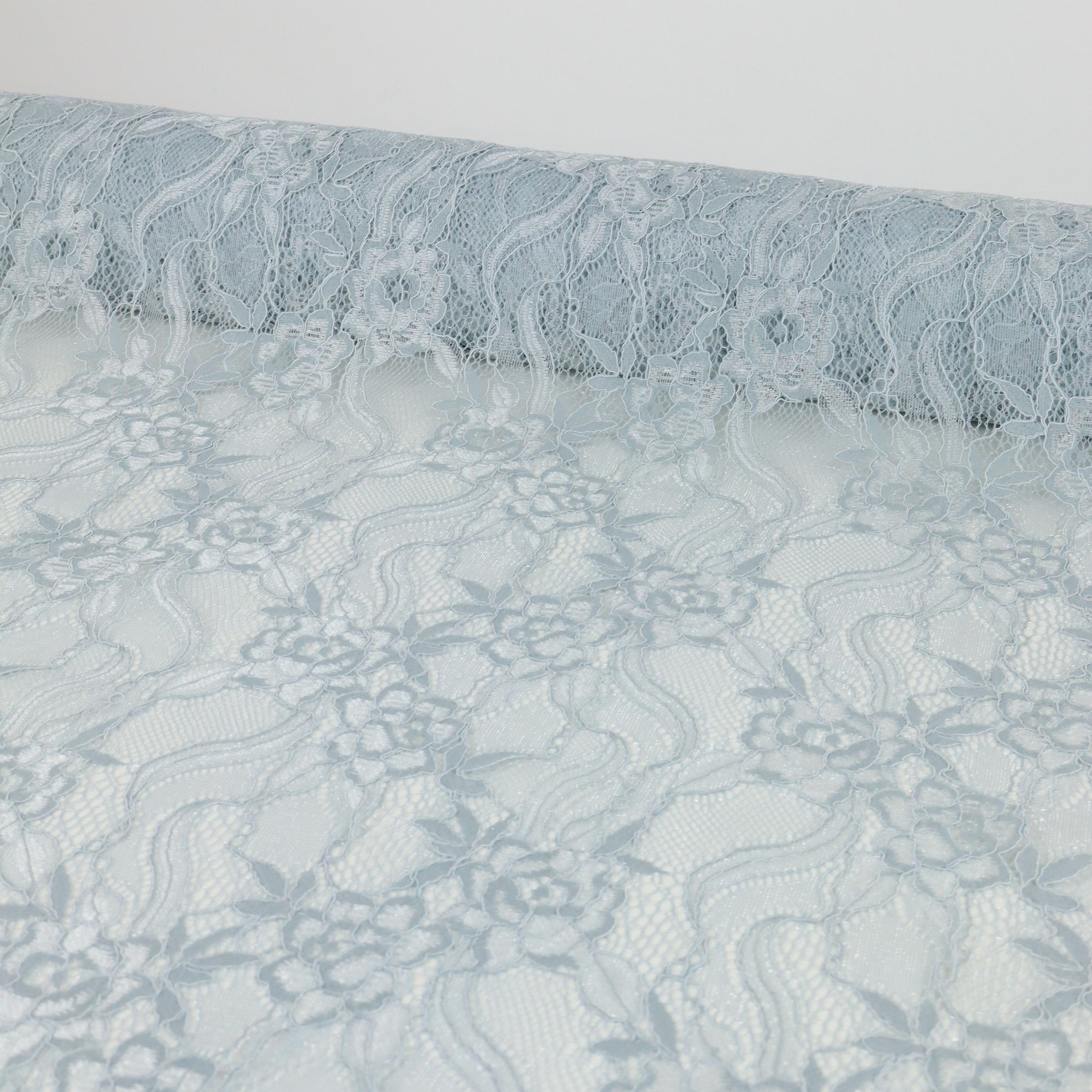 Cotton Nylon Floral Lace Deadstock – Aquila Blue. A pretty vine floral lace, crafted from a cotton-nylon blend with a subtle sparkle woven through. Lightweight and delicate, it’s perfect for the on-trend lace look - ideal for shirts, camis, dresses, and even elevated t-shirts.