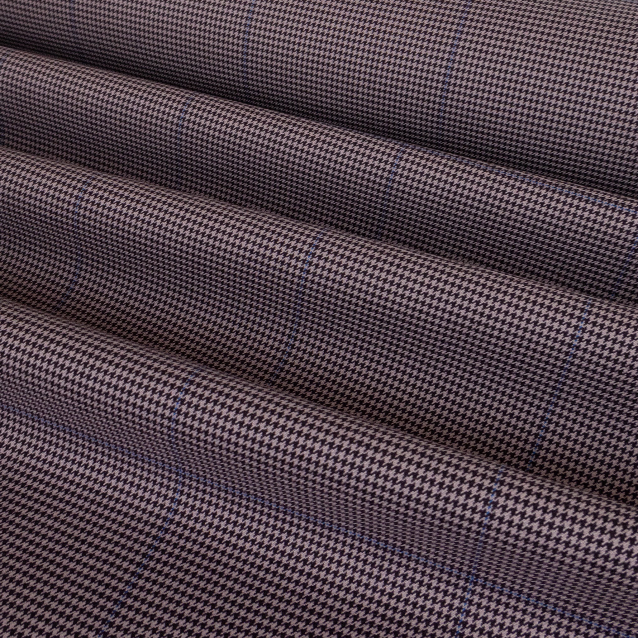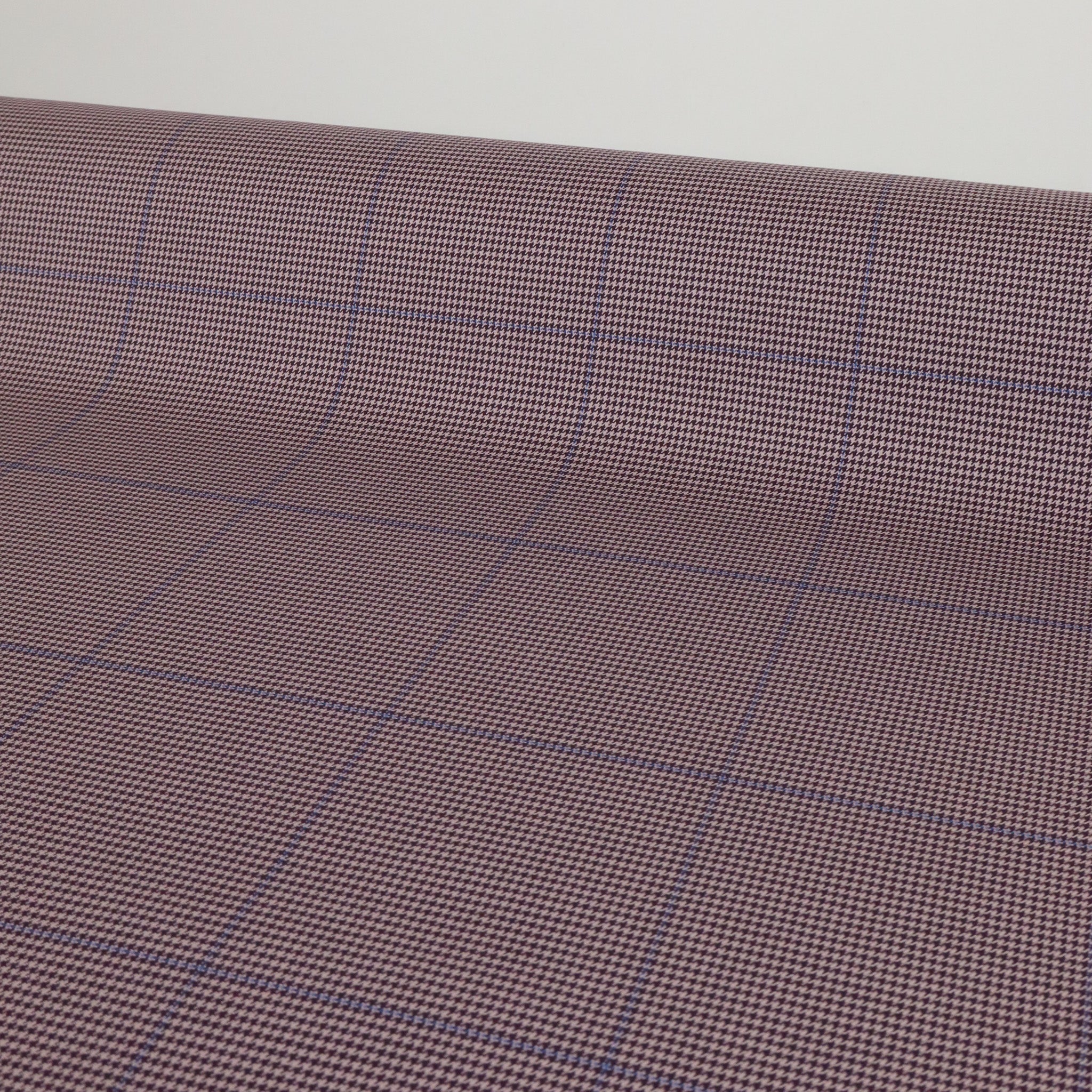 Mini Houndstooth Cotton Spandex Suiting - Marbury. A quality cotton suiting with comfort stretch, featuring a classic mini houndstooth pattern in purple and lilac. With a smooth hand feel and structured drape, this fabric is ideal for tailored pants, skirts, blazers, and structured dresses.