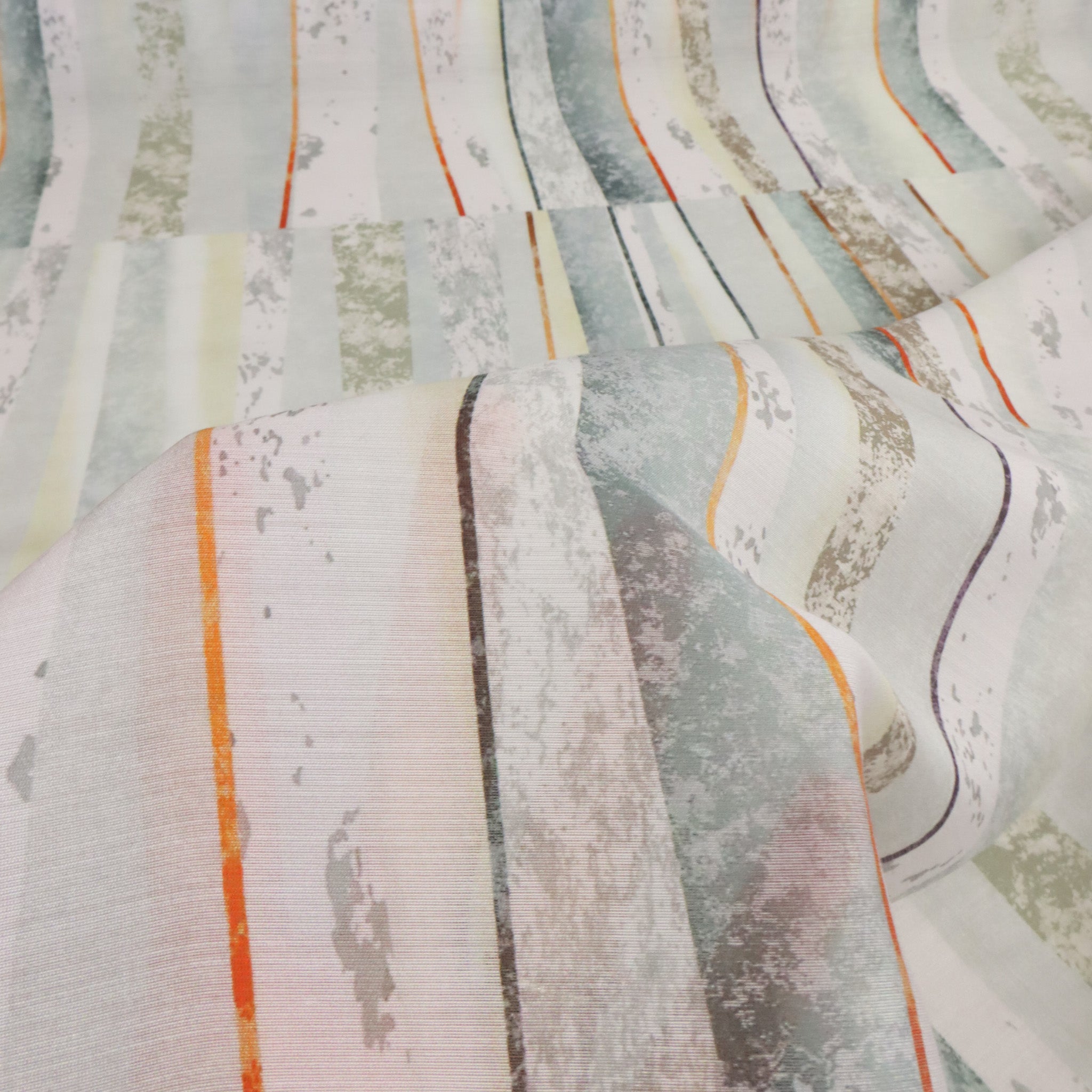 Tencel Nylon Print - Mapleton. An abstract, artful print on a lightweight Tencel-nylon base. Soft, airy, and fluid, this fabric is perfect for statement blouses, dresses, and layering pieces. Due to the nylon content, a low iron is recommended if needed.