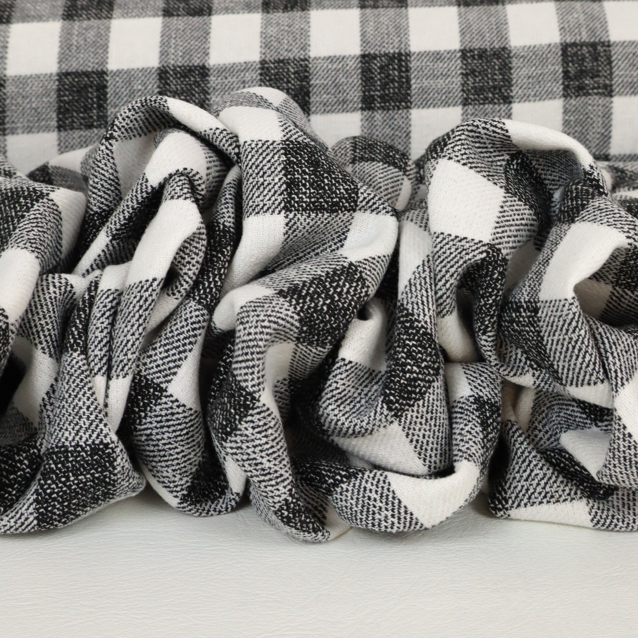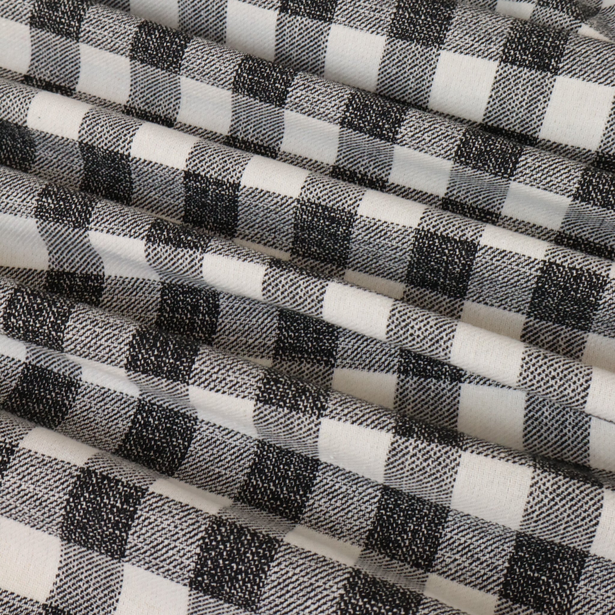 Viscose Woven Check Designer End - Lila Black and White. A classic mid-weight woven viscose check in timeless black and white. This Designer End is perfect for shirts, dresses, skirts, or relaxed tailoring. Sourced as a true designer end, available only in limited quantities.