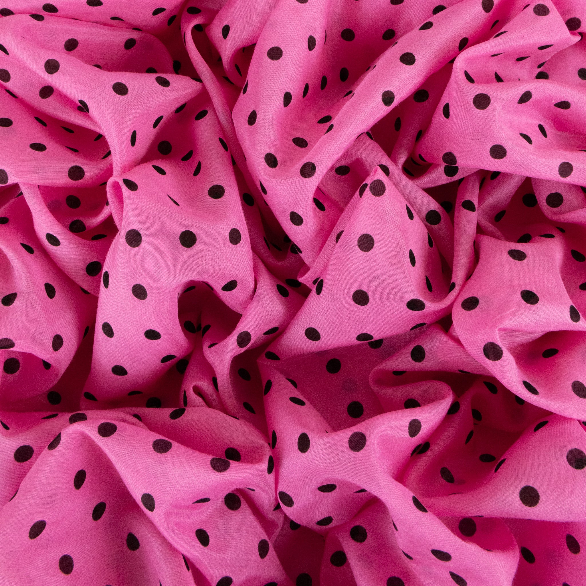 Lightweight Silk Cotton Print Deadstock in Spotty Pink Sateen.