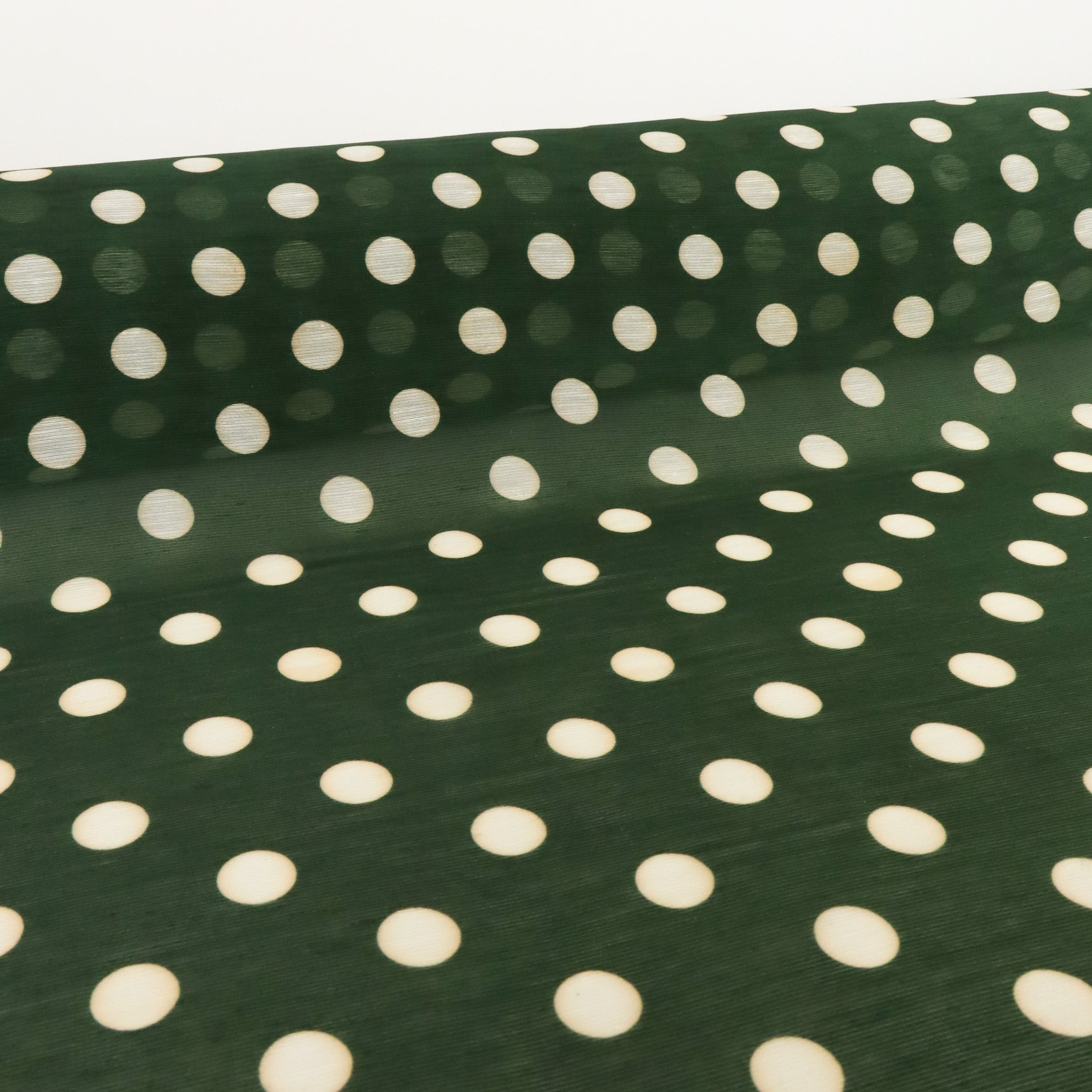 Lightweight Silk Linen Slub Print Deadstock - Forest White Polka. These silk linen print deadstock fabrics feature a mix of jacquards and slubby weaves in botanical, polka dot, and abstract prints, offering texture and character with a natural drape. Semi-opaque with no stretch, they’re ideal for statement dresses, blouses, and playful lined shorts or trousers.