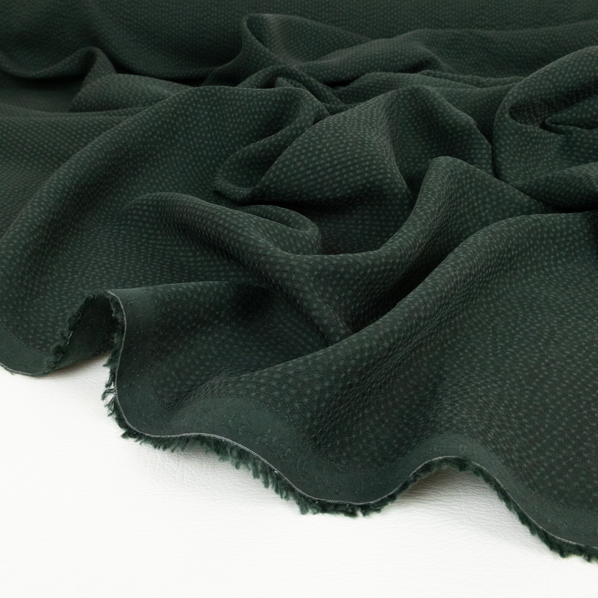 Japanese Sandwashed Cupro Piqué in Green. A luxurious Japanese-made cupro woven in a subtle piqué texture and finished with a soft sandwashed touch. Smooth, breathable, and fluid — perfect for elegant dresses, relaxed shirts, and drapey wide-leg pants.