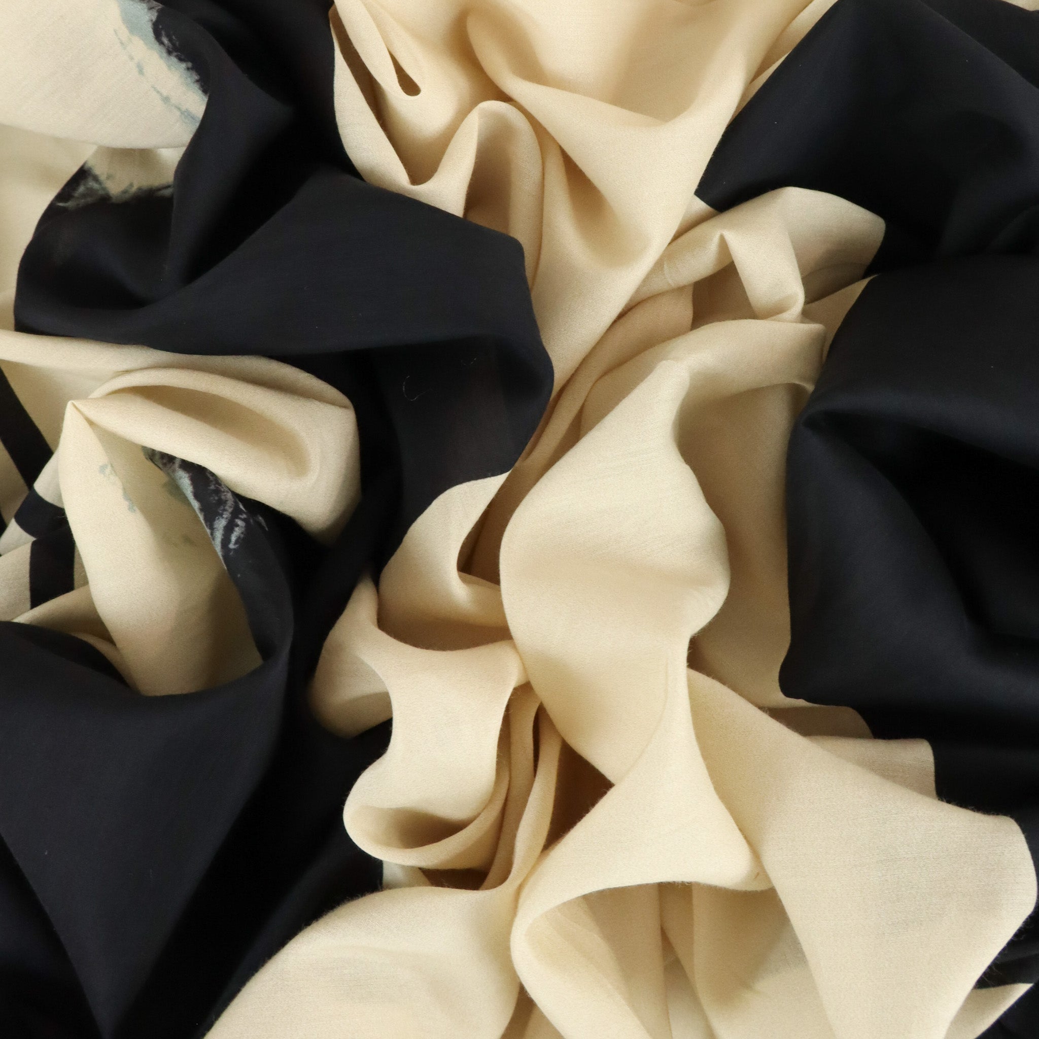 Lightweight Silk Cotton Print Deadstock in Jazz. These cotton/silk deadstock fabrics are lightweight and fluid, woven in a plain weave structure and semi-opaque finish.
