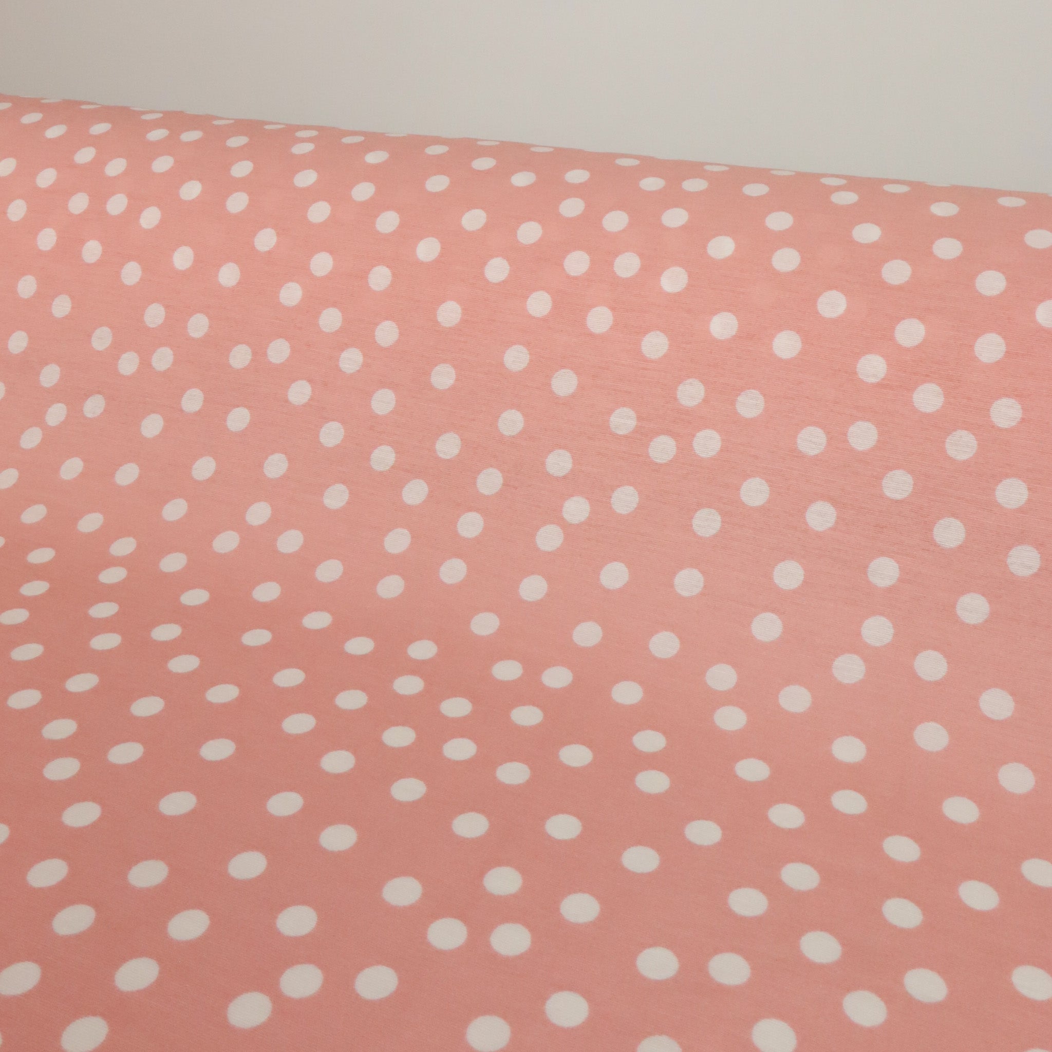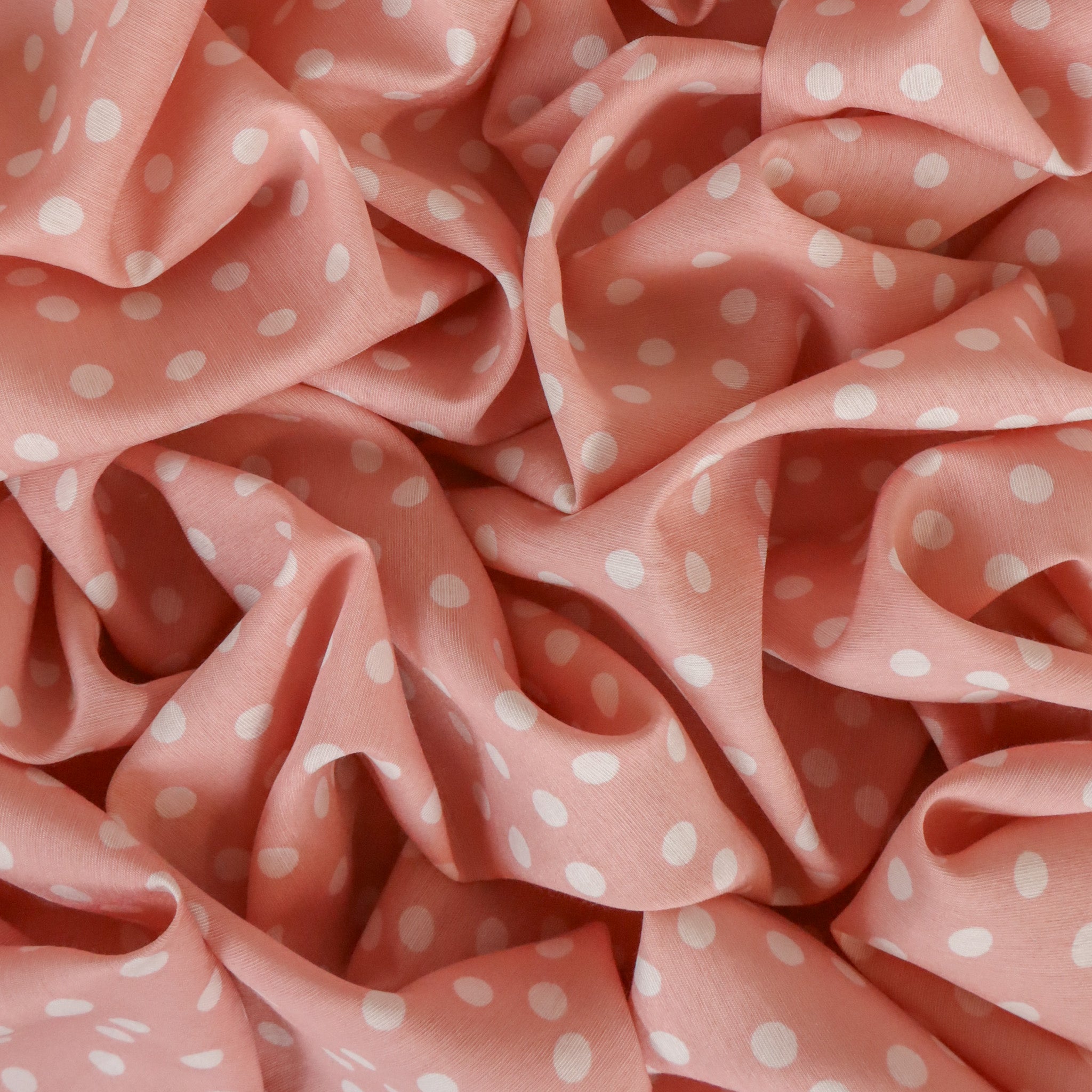 Viscose Polka Dot Print - Dotty Petal. A quality printed viscose nylon with a soft hand feel and fluid drape. Lightweight and breathable, it’s ideal for tops, blouses, dresses, and other garments that call for ease and movement. Cool iron if needed.