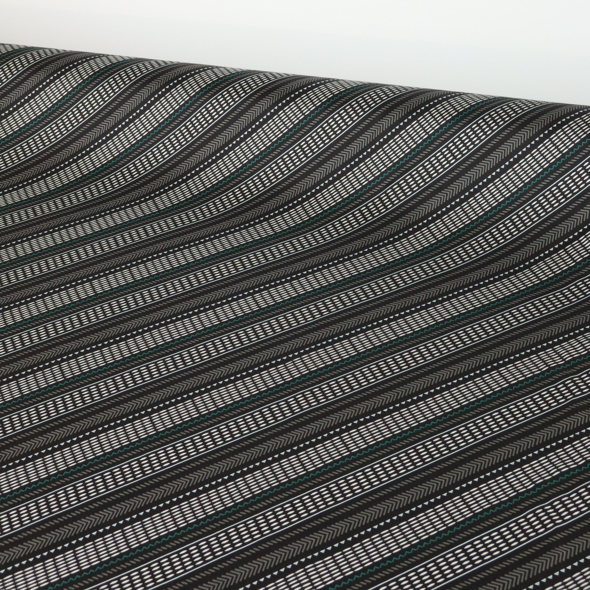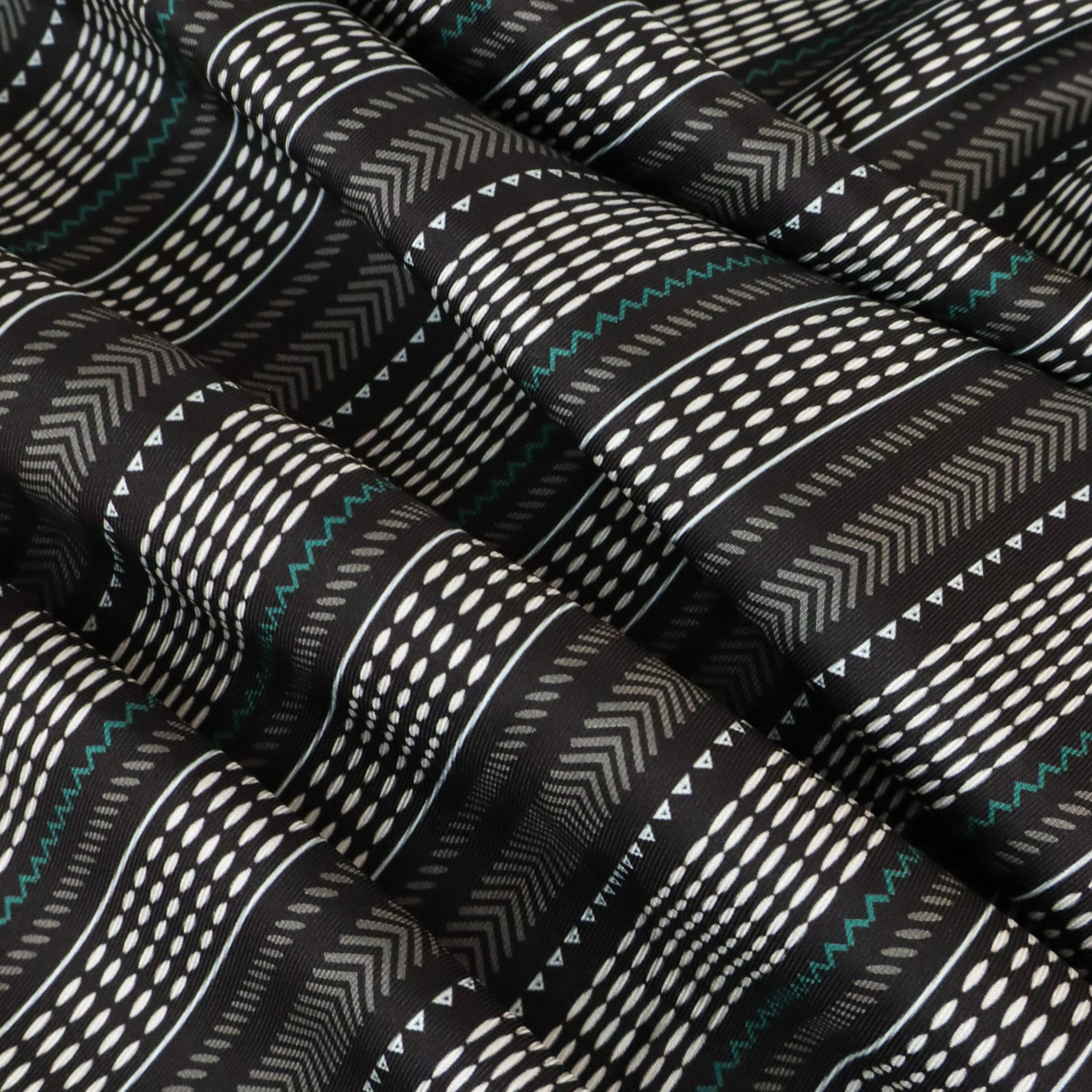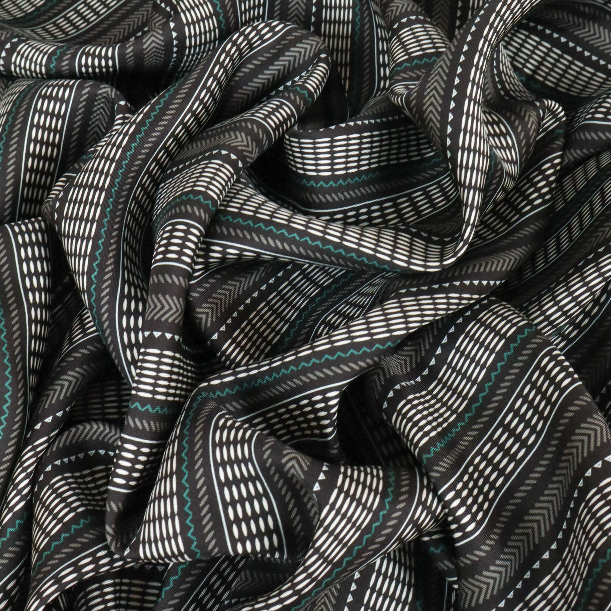 A striking silk satin jacquard featuring a diagonal design in shades of grey, white, and emerald. Smooth and lustrous with a refined texture, this fabric is perfect for elegant dresses, skirts, and statement lining. Sourced as a true designer end, available only in limited quantities.