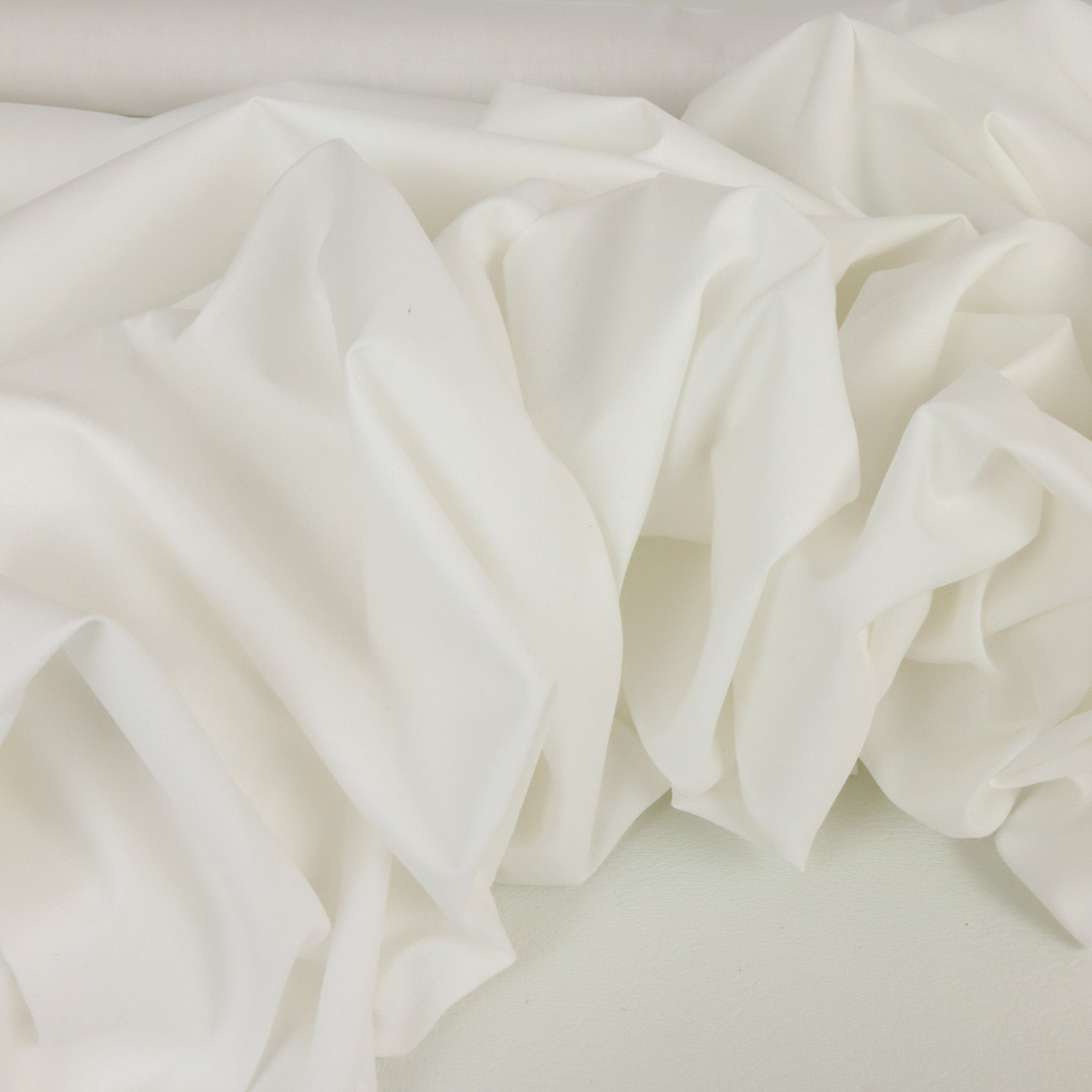 100% Cotton Poplin in Off White. This is a lightweight poplin but has enough weight to give structure to a garment. It will work well to create a puff sleeve or a crisp collar.