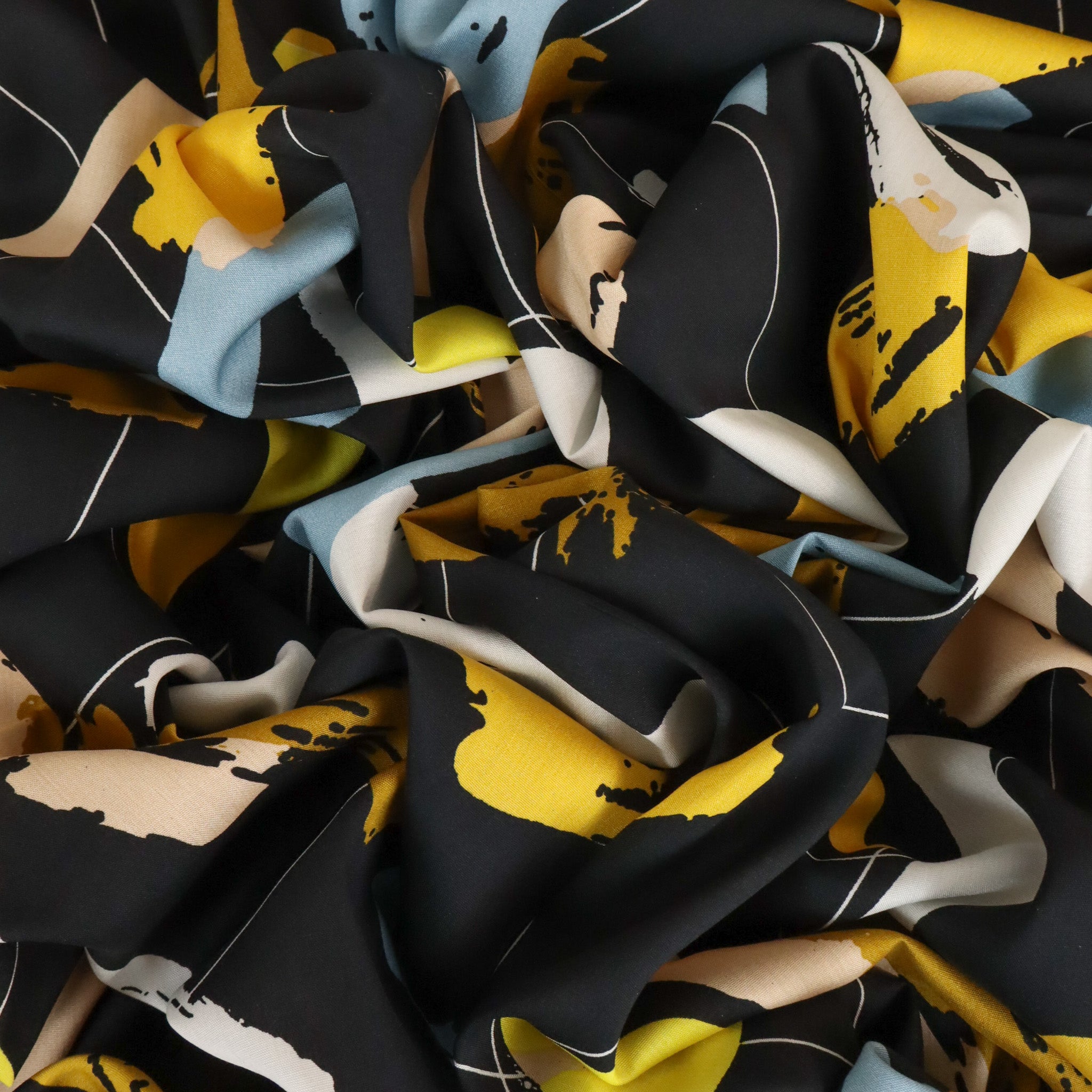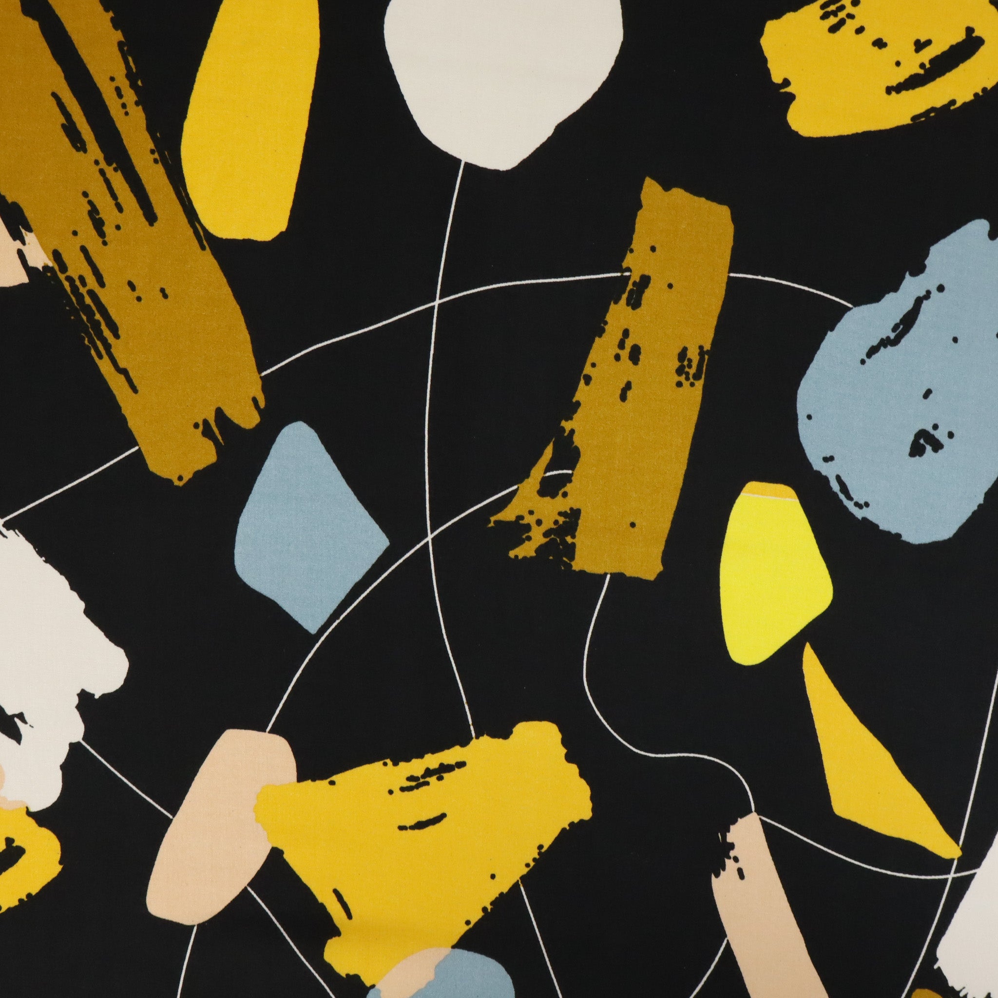 Rayon Challis Print Deadstock - Alabama Black. A lightweight rayon challis with a smooth hand feel and soft drape. Comfortable and breathable, it’s perfect for shirts, dresses, skirts, or relaxed shorts.