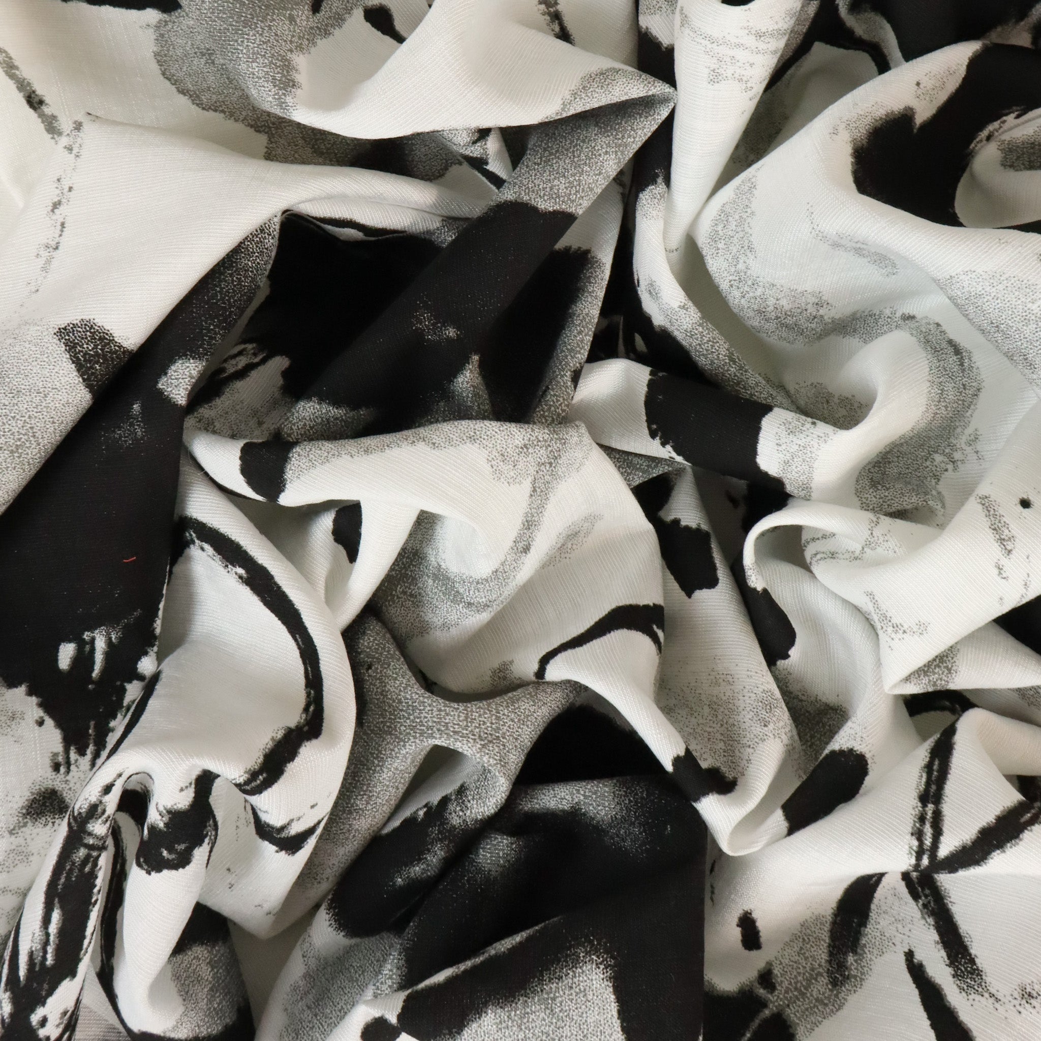 Rayon Nylon Print Deadstock - Starboy. A lightweight rayon nylon with a crepe like hand feel and texture. Comfortable and breathable, it’s perfect for shirts, dresses, skirts, or relaxed shorts. Cool iron.